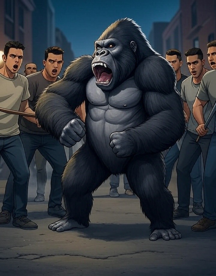 Beat up Crazy Gorilla with friends